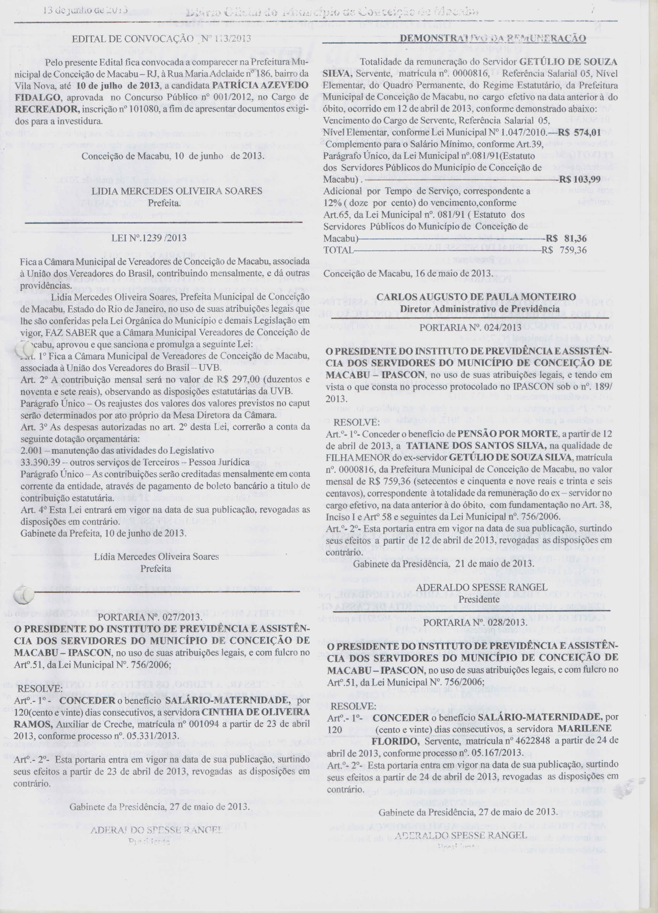 Ementa: Altera a Lei Municipal, n° 1211, de 08 de janeiro de 2013, que dispõe sobre as diretrizes para elaboração da Lei Orçamentária Anual de 2013. Texto Original |